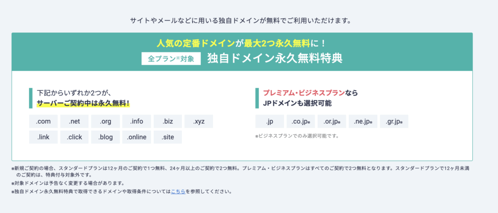 • ドメイン永久無料サービスがある