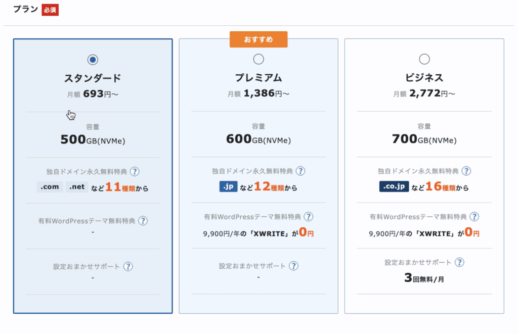 STEP1:サーバーのプランを選択