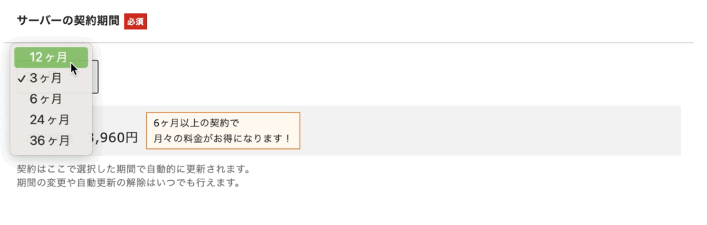 サーバーの契約期間を選択します。