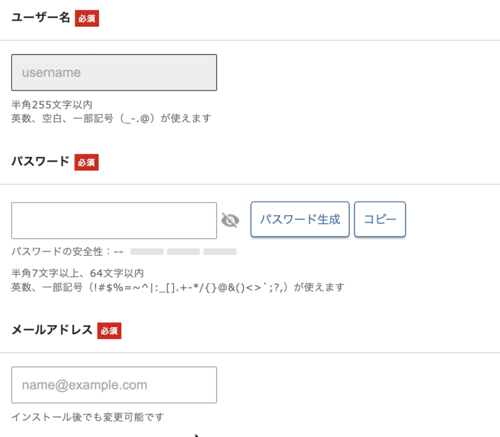 続いて、エックスサーバーのログイン情報ともなるユーザー情報を登録していきます。